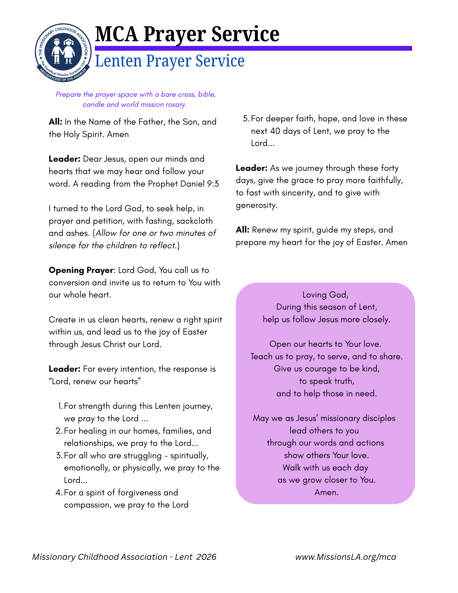 Explanation of the three pillars of Lent (Paper 8.5 x 11)